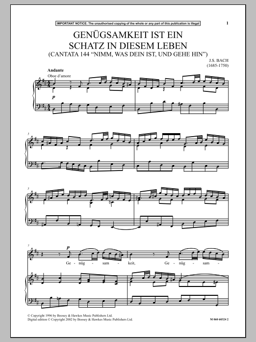 Quick facts Genugsamkeit Ist Ein Schatz In Diesem Leben (Cantata 144 Nimm, Was Dein Ist, Und Gehe Hin) about digital sheet music