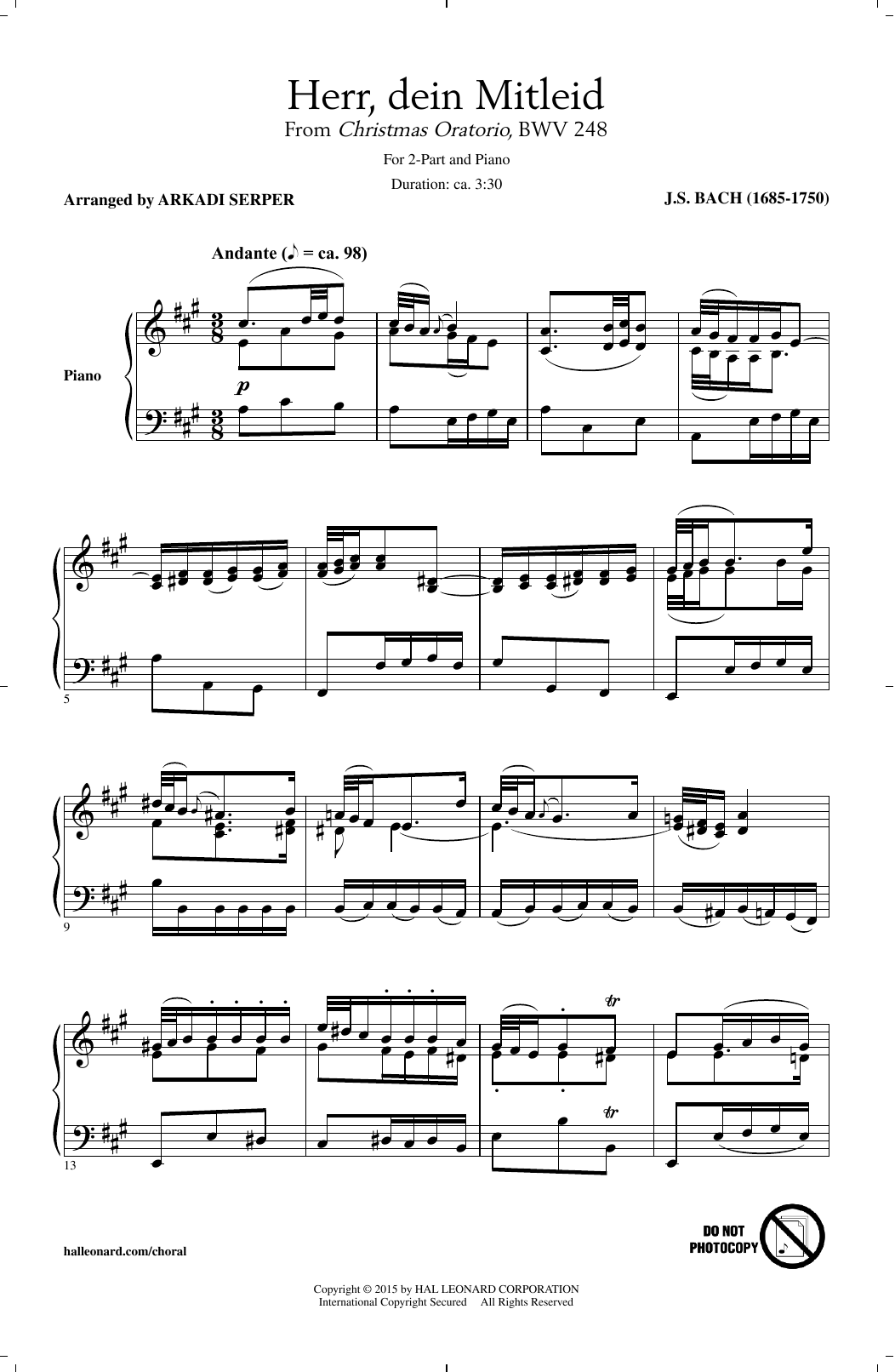 Download or print J.S. Bach Herr, Dein Mitleid (arr. Arkadi Serper) sheet music, chords and digital score arranged for 2-Part Choir. This Classical score includes 10 page(s).
