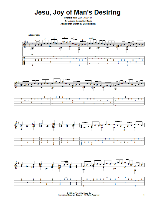 Download or print David Dolata Jesu, Joy Of Man's Desiring sheet music, chords and digital score arranged for Solo Guitar. This Classical score includes 4 page(s).