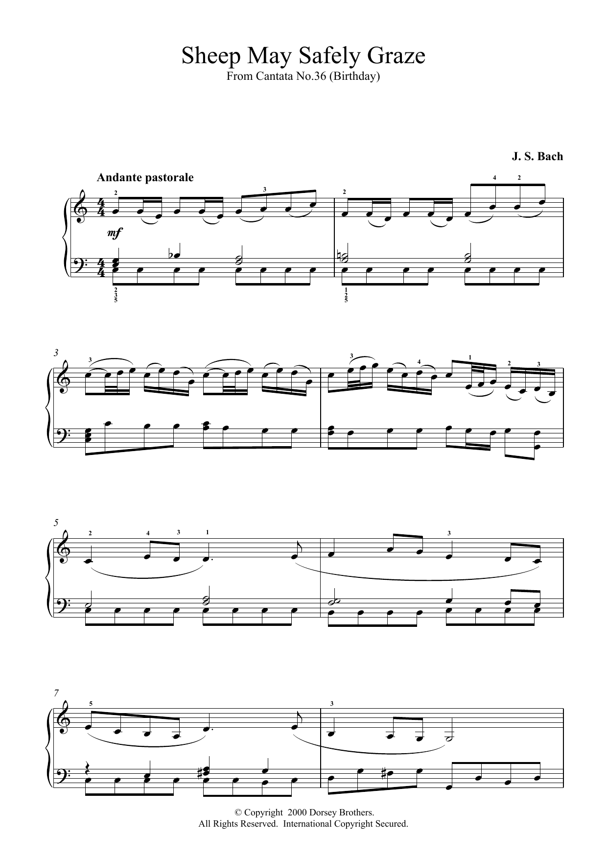 Download or print Johann Sebastian Bach Sheep May Safely Graze sheet music, chords and digital score arranged for Easy Piano. This Classical score includes 8 page(s).