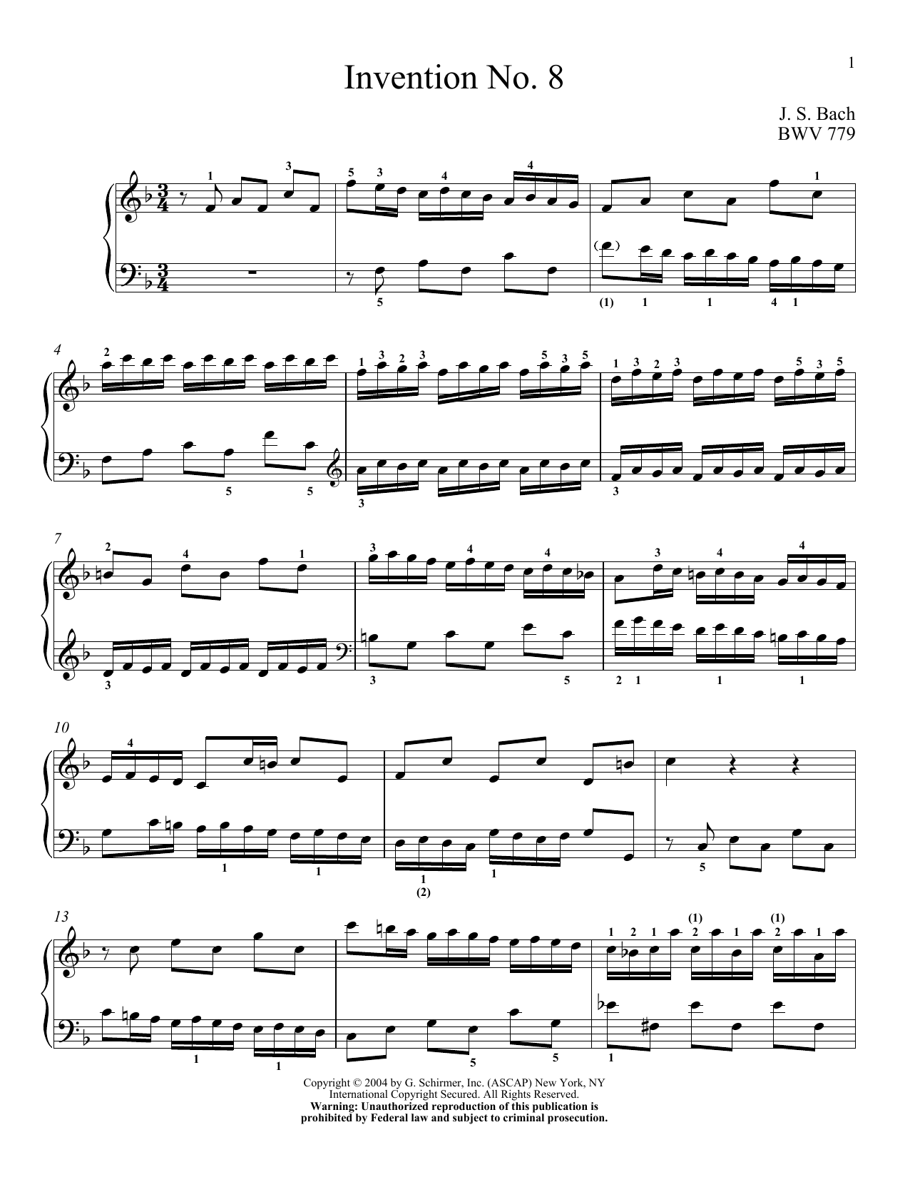 Quick facts Two-Part Invention In F Major about digital sheet music