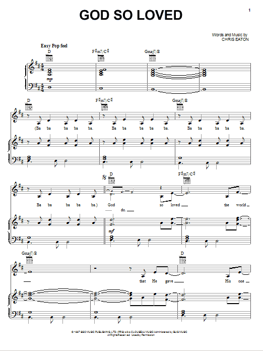 Download or print Jaci Velasquez God So Loved sheet music, chords and digital score arranged for Piano, Vocal & Guitar Chords (Right-Hand Melody). This Christian score includes 7 page(s).