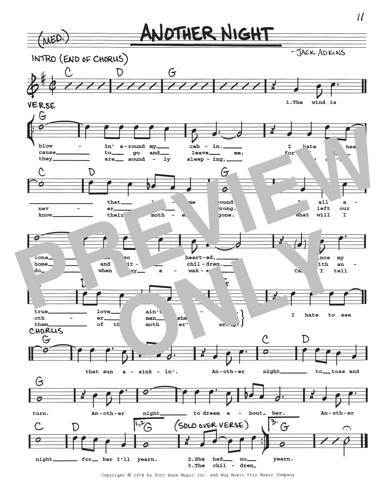Download or print Jack Adkins Another Night sheet music, chords and digital score arranged for Real Book – Melody, Lyrics & Chords. This Jazz score includes 1 page(s).