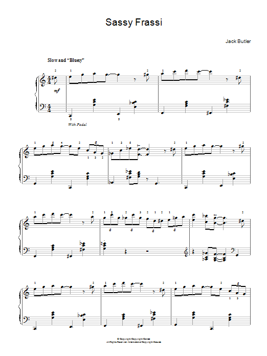 Download or print Jack Butler Sassy Frassi sheet music, chords and digital score arranged for Piano Solo. This Blues score includes 3 page(s).