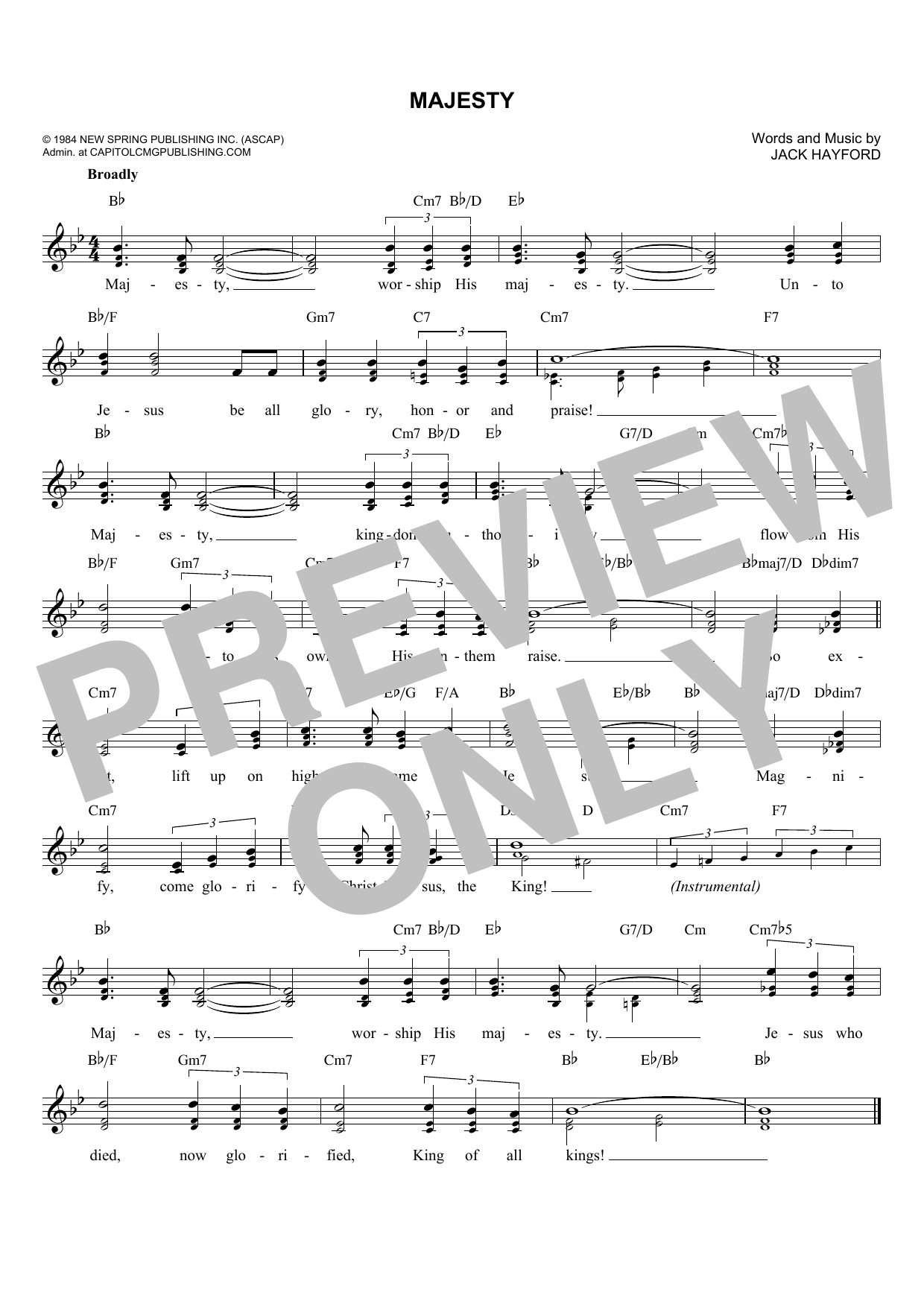 Download or print Jack Hayford Majesty sheet music, chords and digital score arranged for Clarinet Solo. This Sacred score includes 1 page(s).