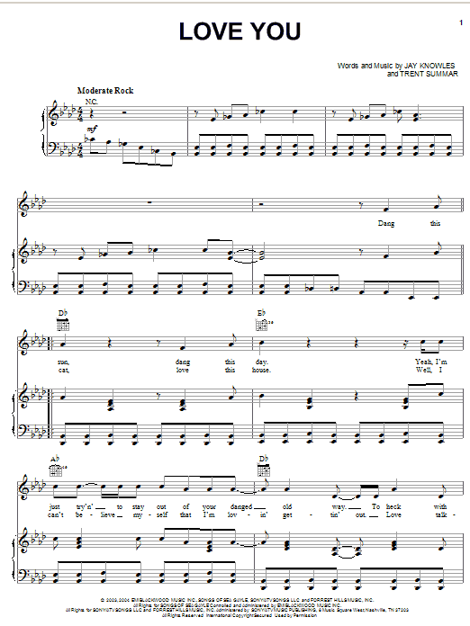Download or print Jack Ingram Love You sheet music, chords and digital score arranged for Piano, Vocal & Guitar Chords (Right-Hand Melody). This Country score includes 7 page(s).