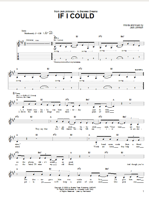 Download or print Jack Johnson If I Could sheet music, chords and digital score arranged for Guitar Chords/Lyrics. This Rock score includes 2 page(s).