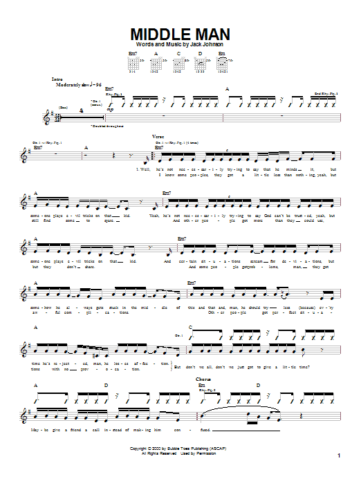 Download or print Jack Johnson Middle Man sheet music, chords and digital score arranged for Easy Piano. This Rock score includes 5 page(s).