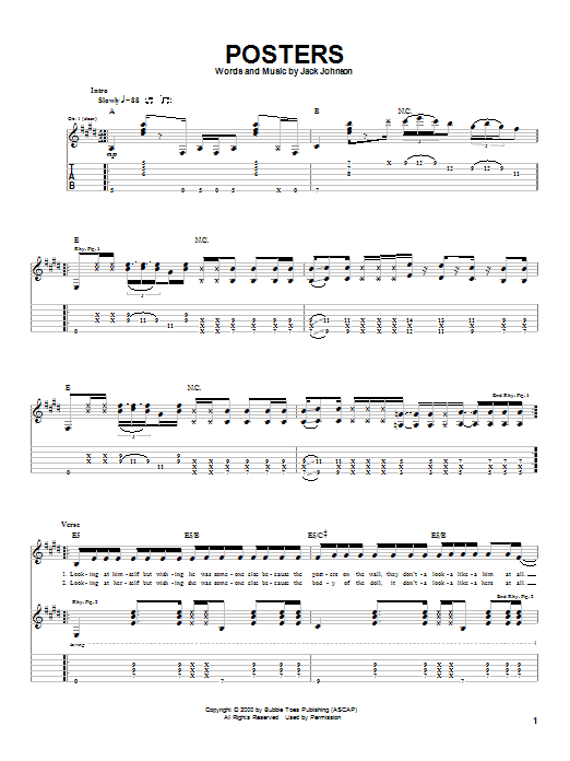 Download or print Jack Johnson Posters sheet music, chords and digital score arranged for Easy Piano. This Rock score includes 6 page(s).