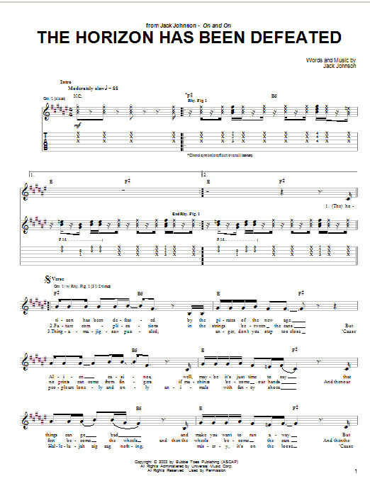 Download or print Jack Johnson The Horizon Has Been Defeated sheet music, chords and digital score arranged for Easy Piano. This Pop score includes 4 page(s).