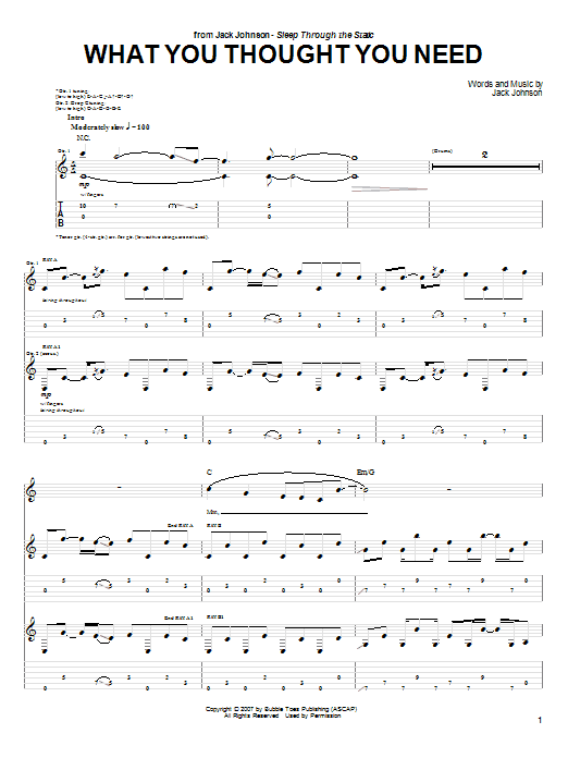 Download or print Jack Johnson What You Thought You Need sheet music, chords and digital score arranged for Guitar Tab. This Pop score includes 11 page(s).