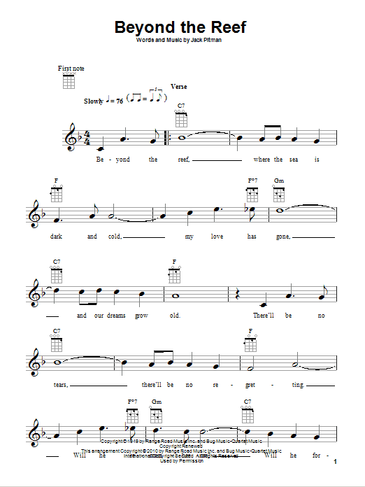 Download or print Jack Pitman Beyond The Reef sheet music, chords and digital score arranged for Piano, Vocal & Guitar Chords (Right-Hand Melody). This Standards score includes 2 page(s).