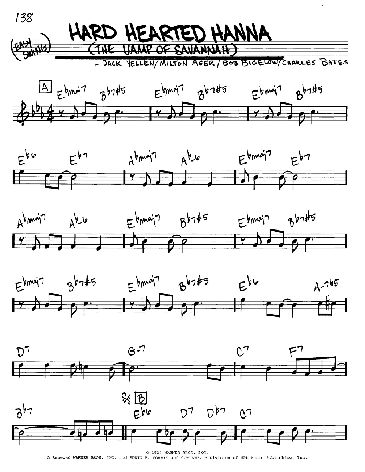 Download or print Jack Yellen Hard Hearted Hannah (The Vamp Of Savannah) sheet music, chords and digital score arranged for Real Book – Melody & Chords – C Instruments. This Jazz score includes 2 page(s).