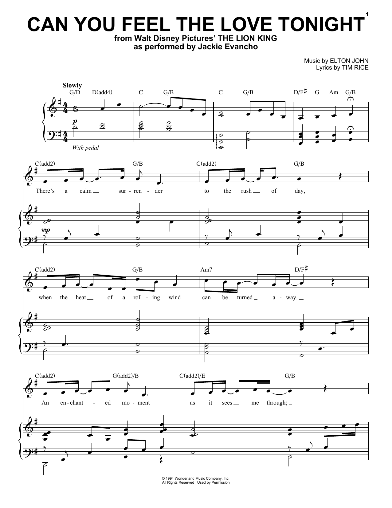 Download or print Jackie Evancho Can You Feel The Love Tonight (from The Lion King) sheet music, chords and digital score arranged for Piano & Vocal. This Disney score includes 5 page(s).