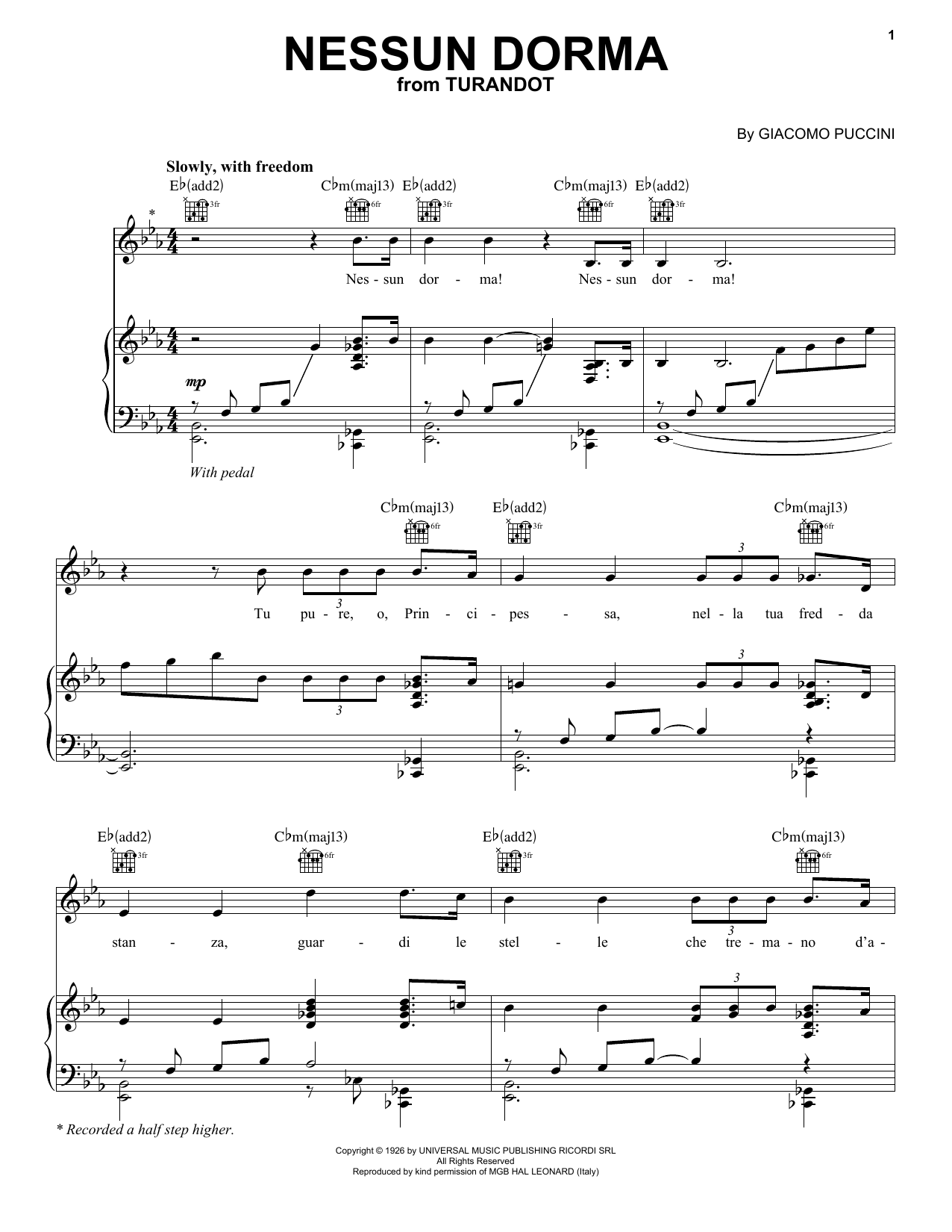 Quick facts Nessun Dorma about digital sheet music