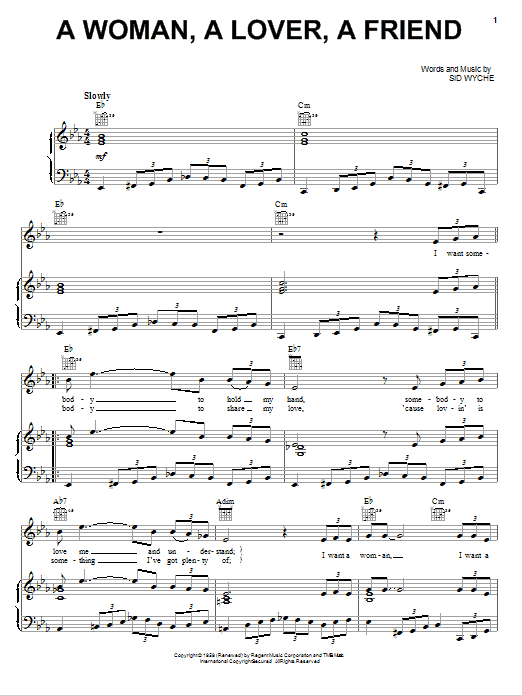 Download or print Jackie Wilson A Woman, A Lover, A Friend sheet music, chords and digital score arranged for Piano, Vocal & Guitar Chords (Right-Hand Melody). This Pop score includes 3 page(s).