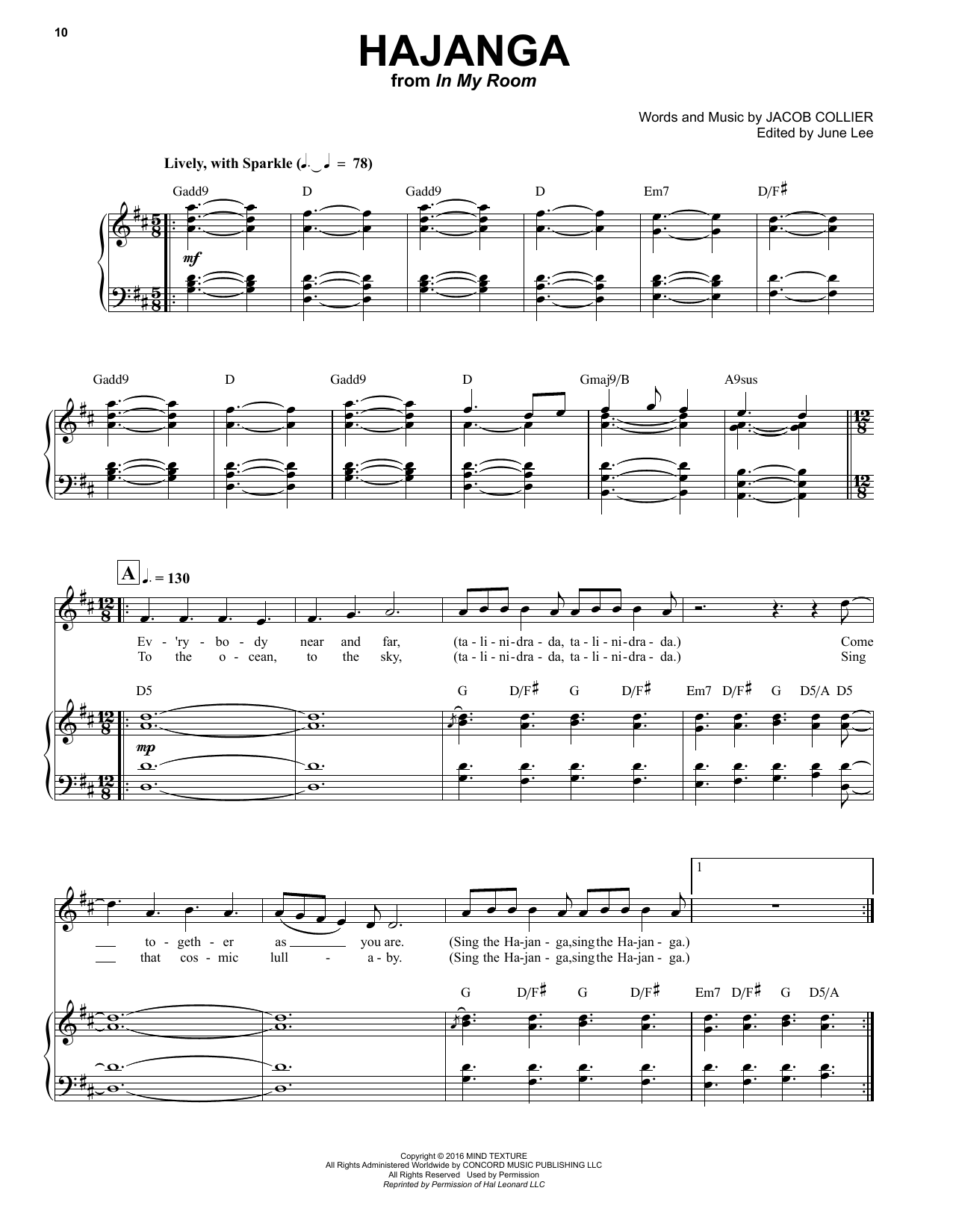 Download or print Jacob Collier Hajanga sheet music, chords and digital score arranged for Piano & Vocal. This Jazz score includes 11 page(s).
