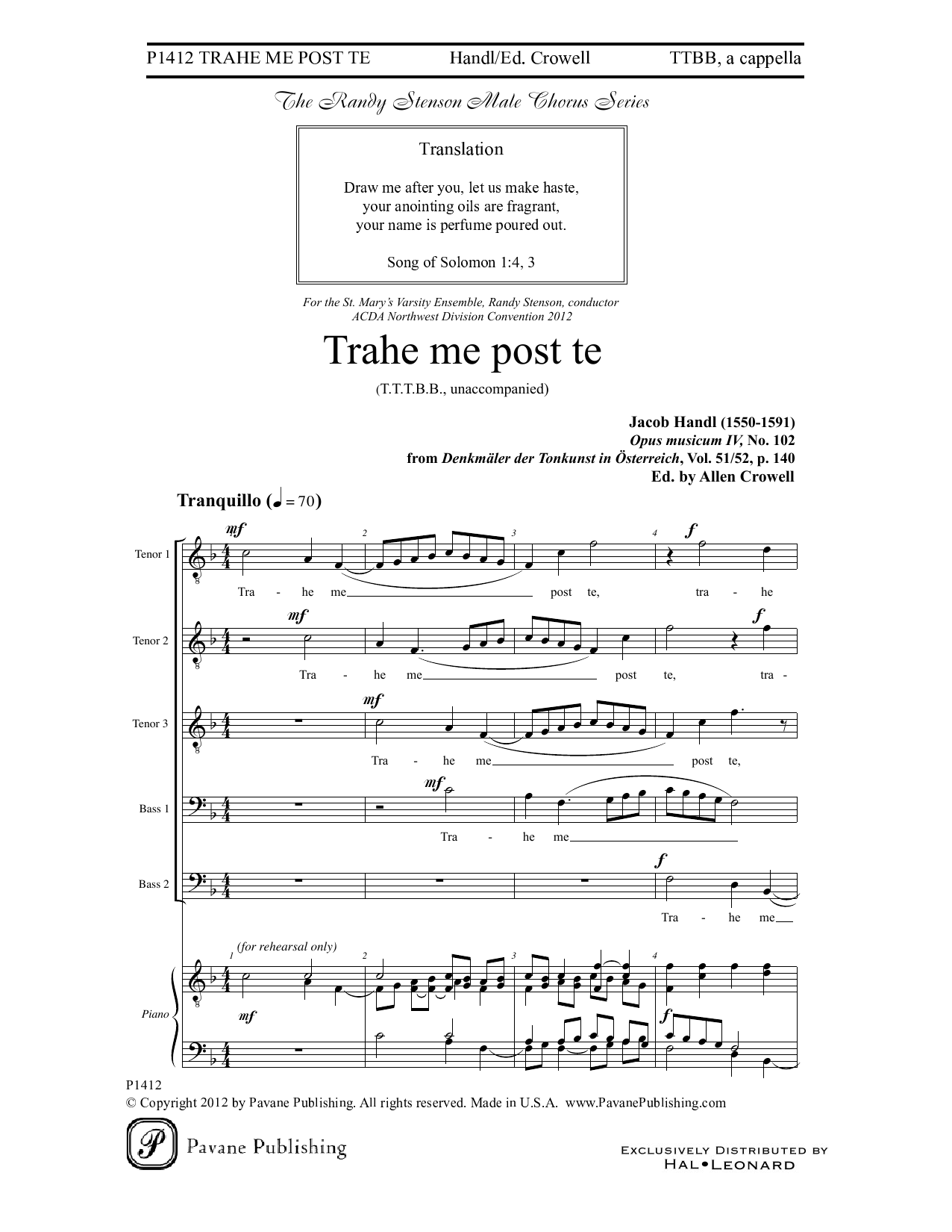 Download or print Jacob Handl Trahe me post te sheet music, chords and digital score arranged for Choir. This Latin score includes 4 page(s).