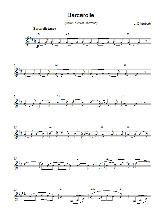 Download or print Jacques Offenbach Barcarolle sheet music, chords and digital score arranged for Clarinet and Piano. This Classical score includes 5 page(s).
