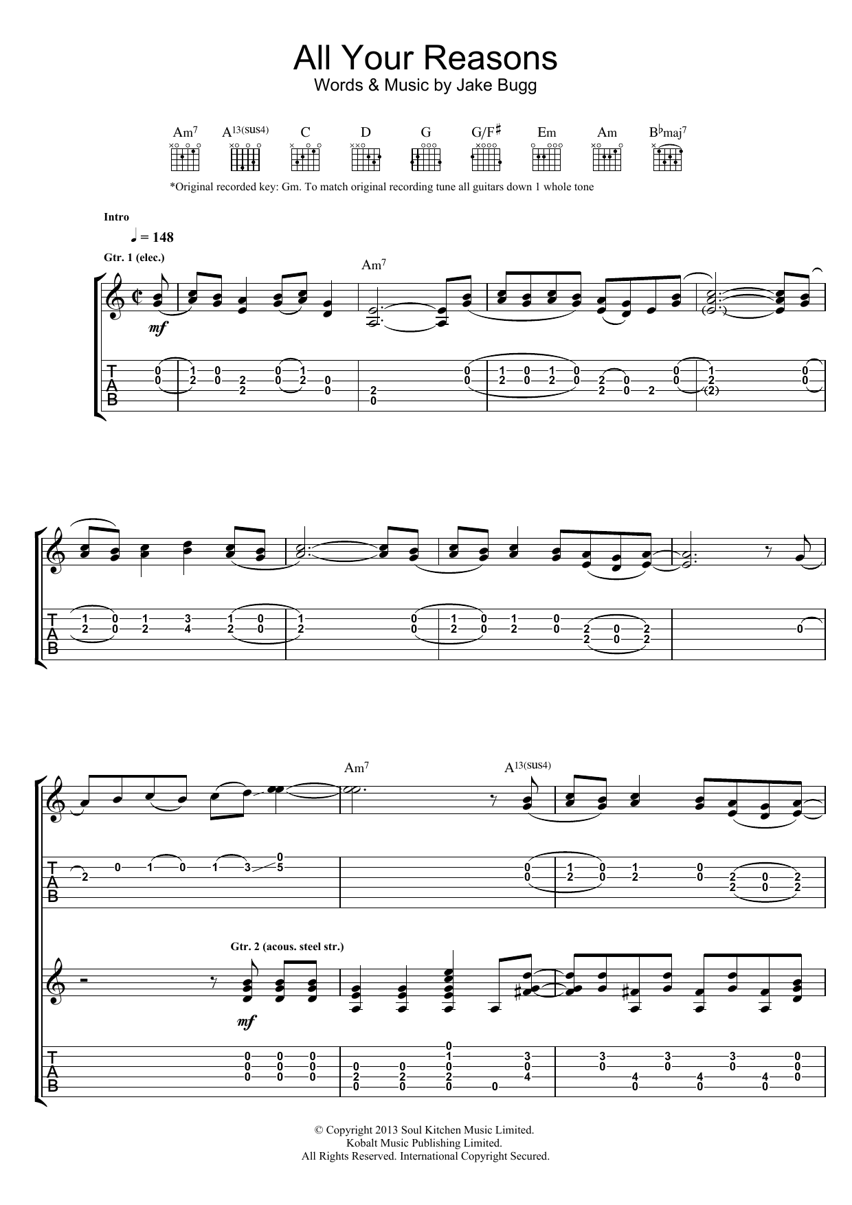 Download or print Jake Bugg All Your Reasons sheet music, chords and digital score arranged for Guitar Tab. This Rock score includes 9 page(s).