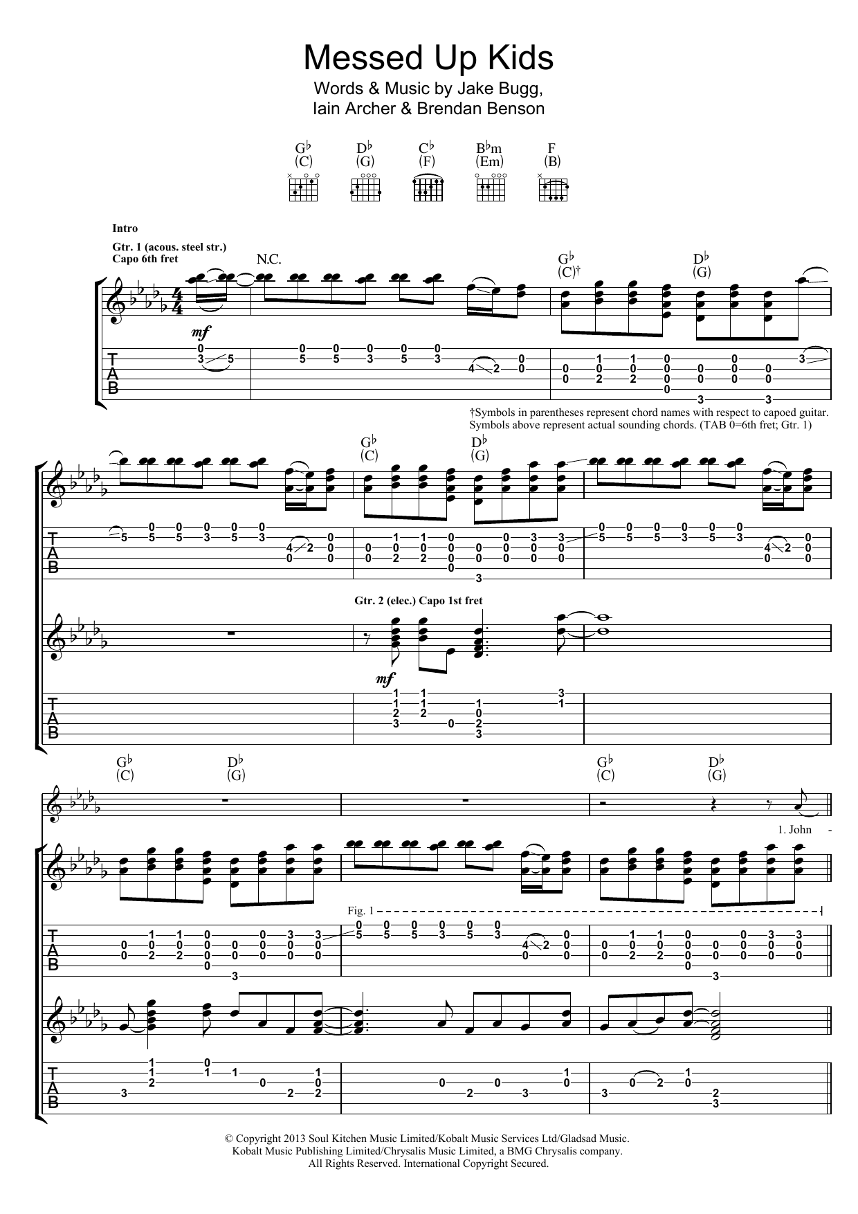 Download or print Jake Bugg Messed Up Kids sheet music, chords and digital score arranged for Guitar Tab. This Rock score includes 5 page(s).