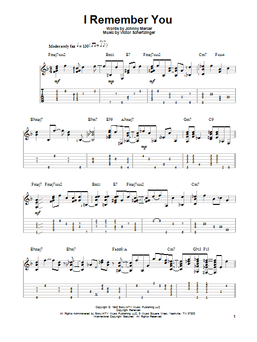Download or print Jake Reichbart I Remember You sheet music, chords and digital score arranged for Solo Guitar. This Jazz score includes 2 page(s).