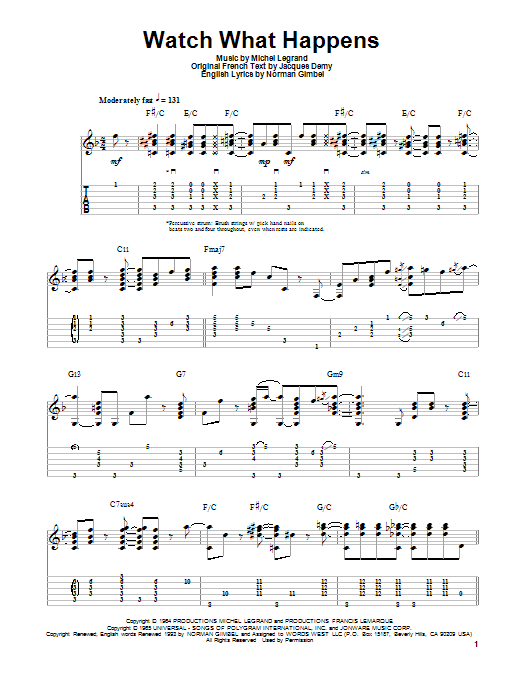 Download or print Jake Reichbart Watch What Happens sheet music, chords and digital score arranged for Solo Guitar. This Jazz score includes 3 page(s).