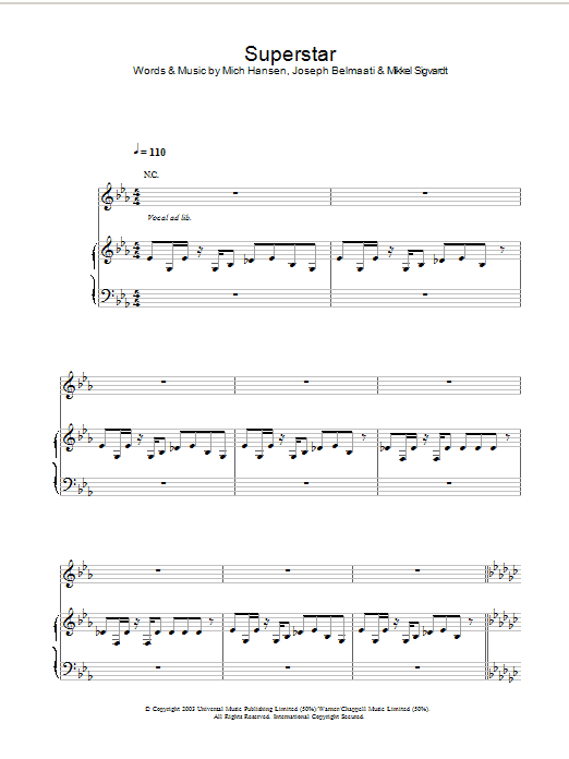 Download or print Jamelia Superstar sheet music, chords and digital score arranged for Piano, Vocal & Guitar Chords. This Pop score includes 8 page(s).