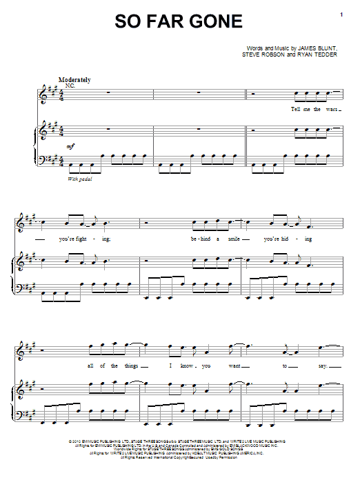 Download or print James Blunt So Far Gone sheet music, chords and digital score arranged for Piano, Vocal & Guitar Chords (Right-Hand Melody). This Pop score includes 5 page(s).