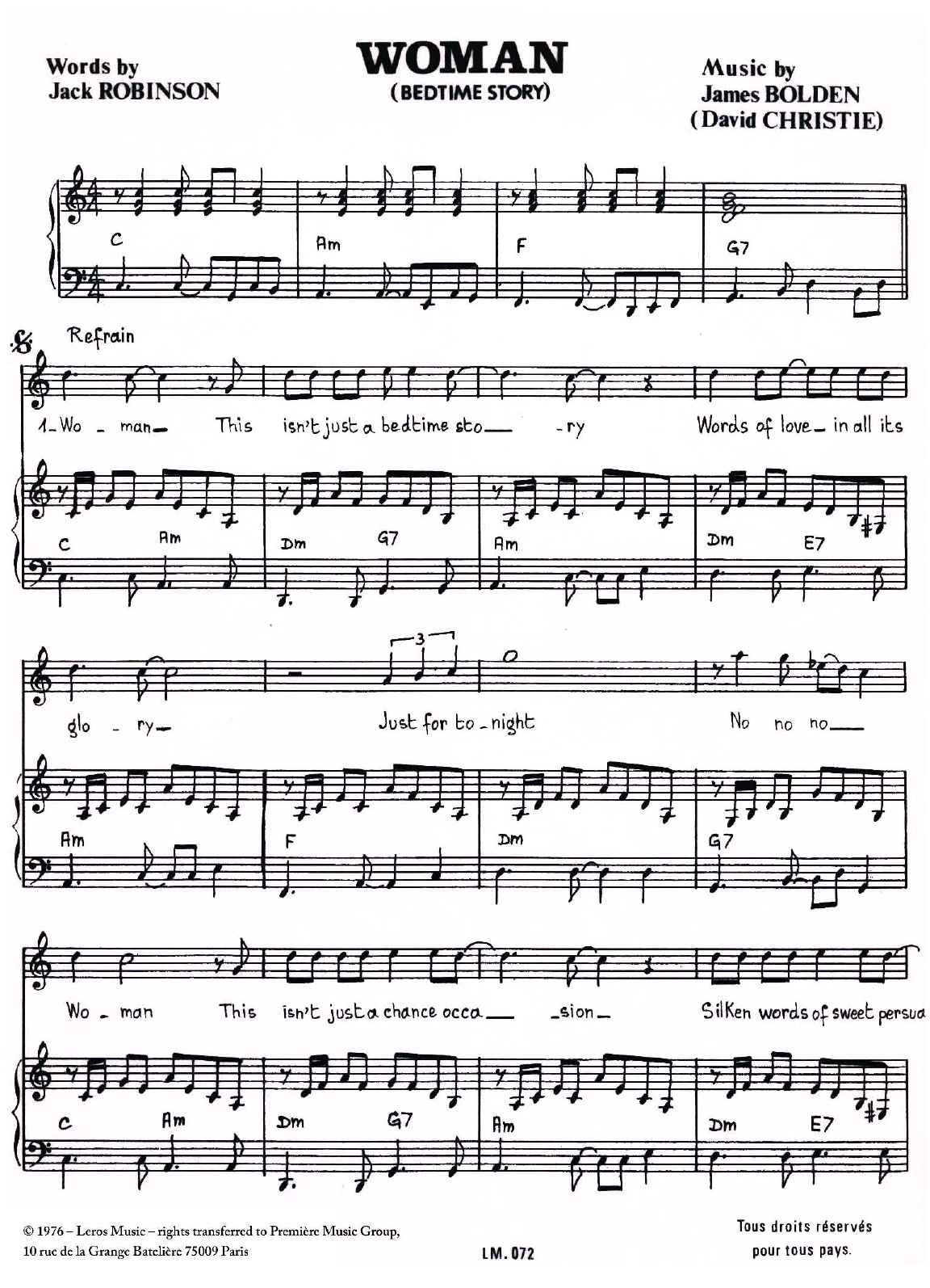 Download or print James Bolden Woman (Bedtime Story) sheet music, chords and digital score arranged for Piano & Vocal. This Standards score includes 2 page(s).