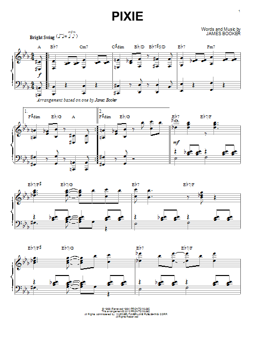 Download or print James Booker Pixie (arr. Brent Edstrom) sheet music, chords and digital score arranged for Piano Solo. This Pop score includes 8 page(s).