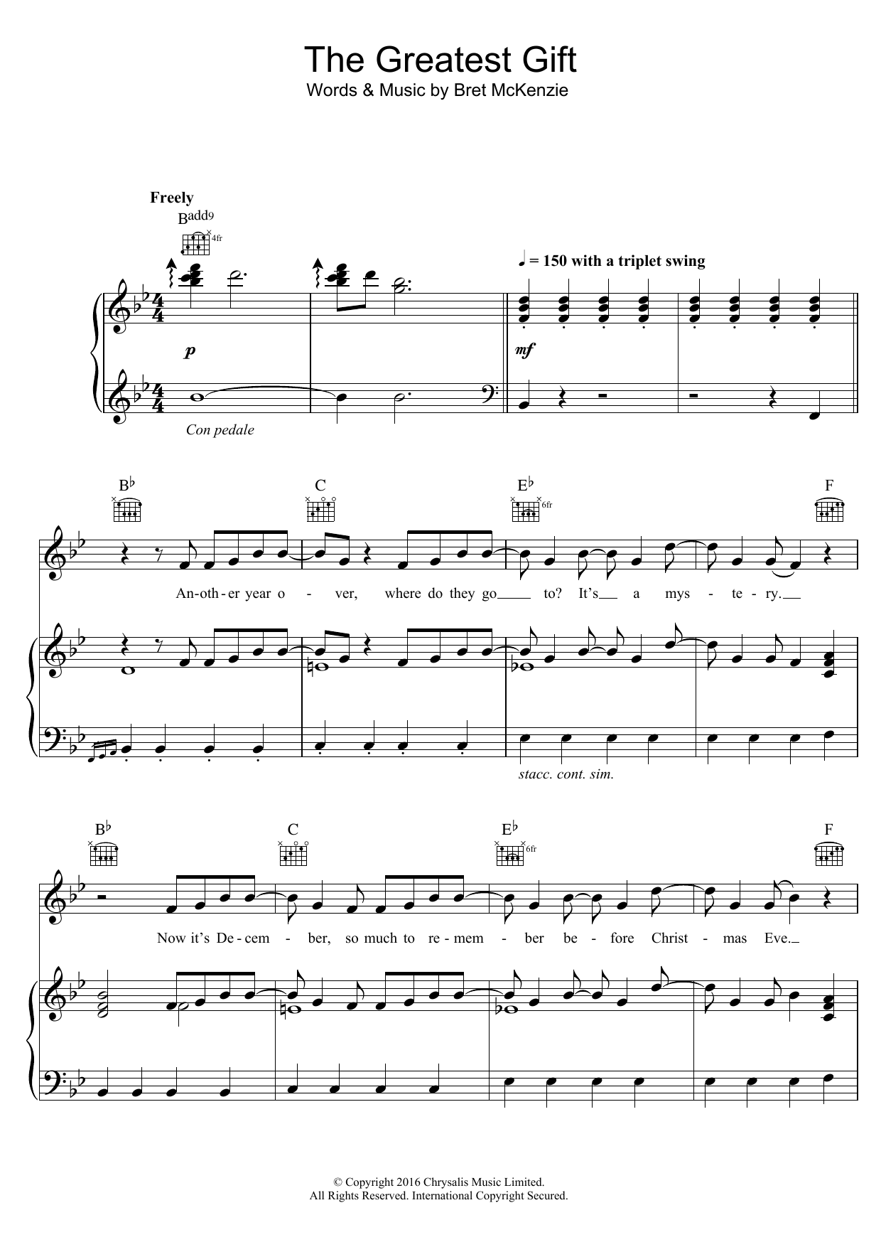 Download or print James Corden The Greatest Gift sheet music, chords and digital score arranged for Piano, Vocal & Guitar Chords. This Film/TV score includes 8 page(s).