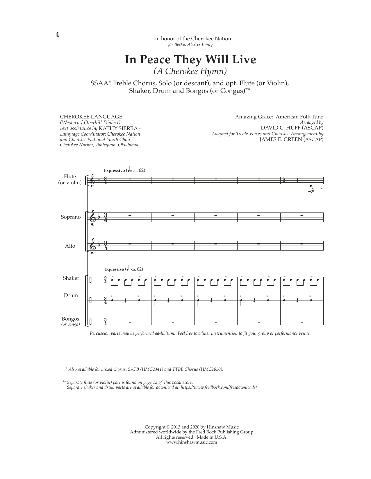 Quick facts In Peace They Will Live (A Cherokee Hymn) about digital sheet music