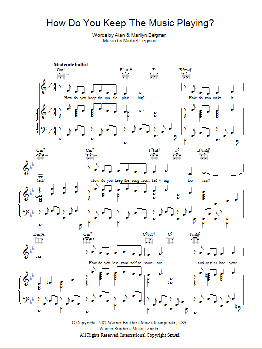 Download or print James Ingram How Do You Keep The Music Playing? sheet music, chords and digital score arranged for Piano, Vocal & Guitar Chords. This Pop score includes 4 page(s).