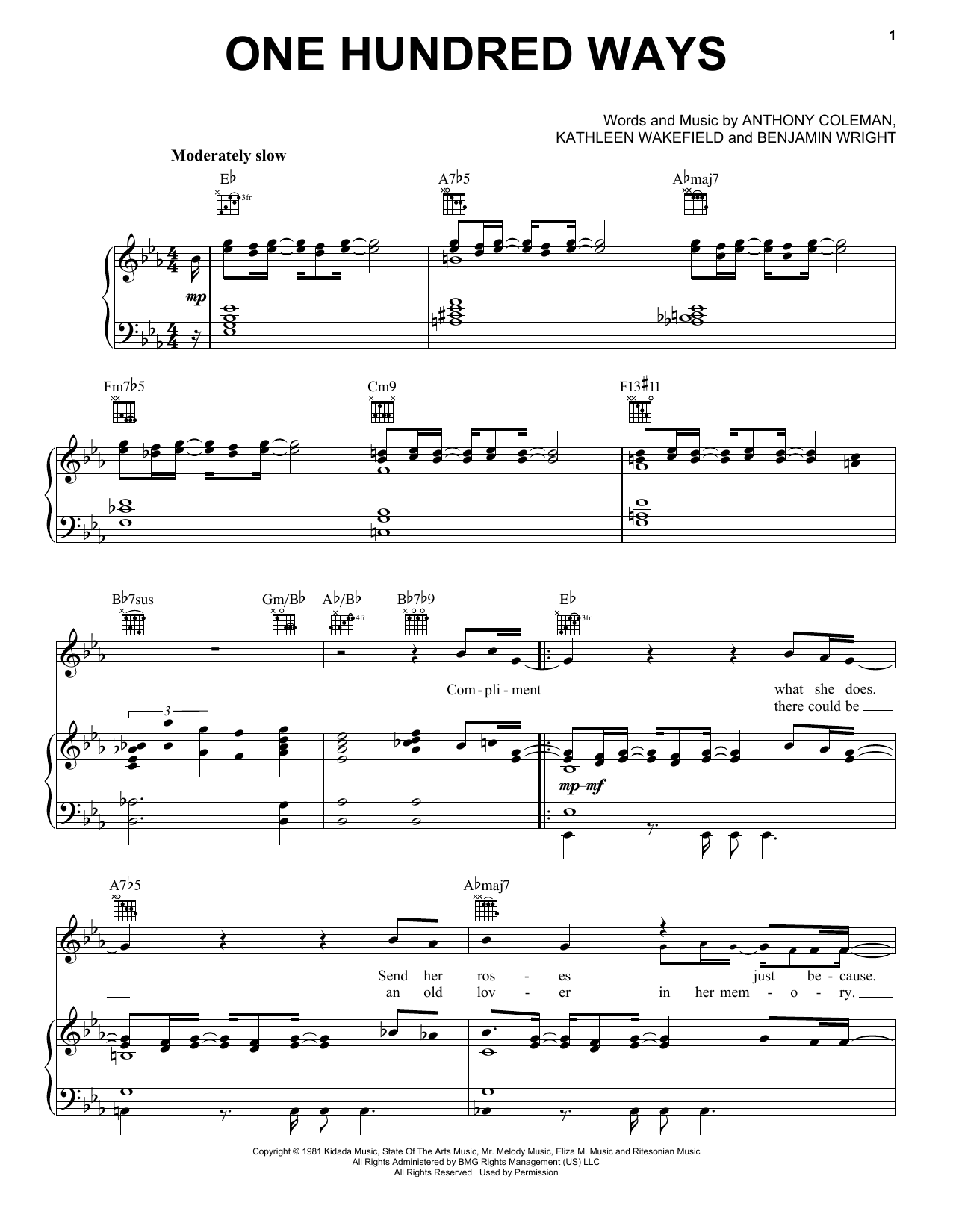 Download or print James Ingram One Hundred Ways sheet music, chords and digital score arranged for Piano, Vocal & Guitar Chords (Right-Hand Melody). This Pop score includes 6 page(s).