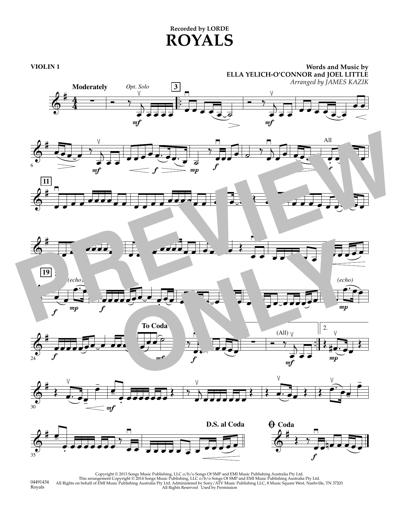 Download or print James Kazik Royals - Violin 1 sheet music, chords and digital score arranged for Orchestra. This Pop score includes 1 page(s).