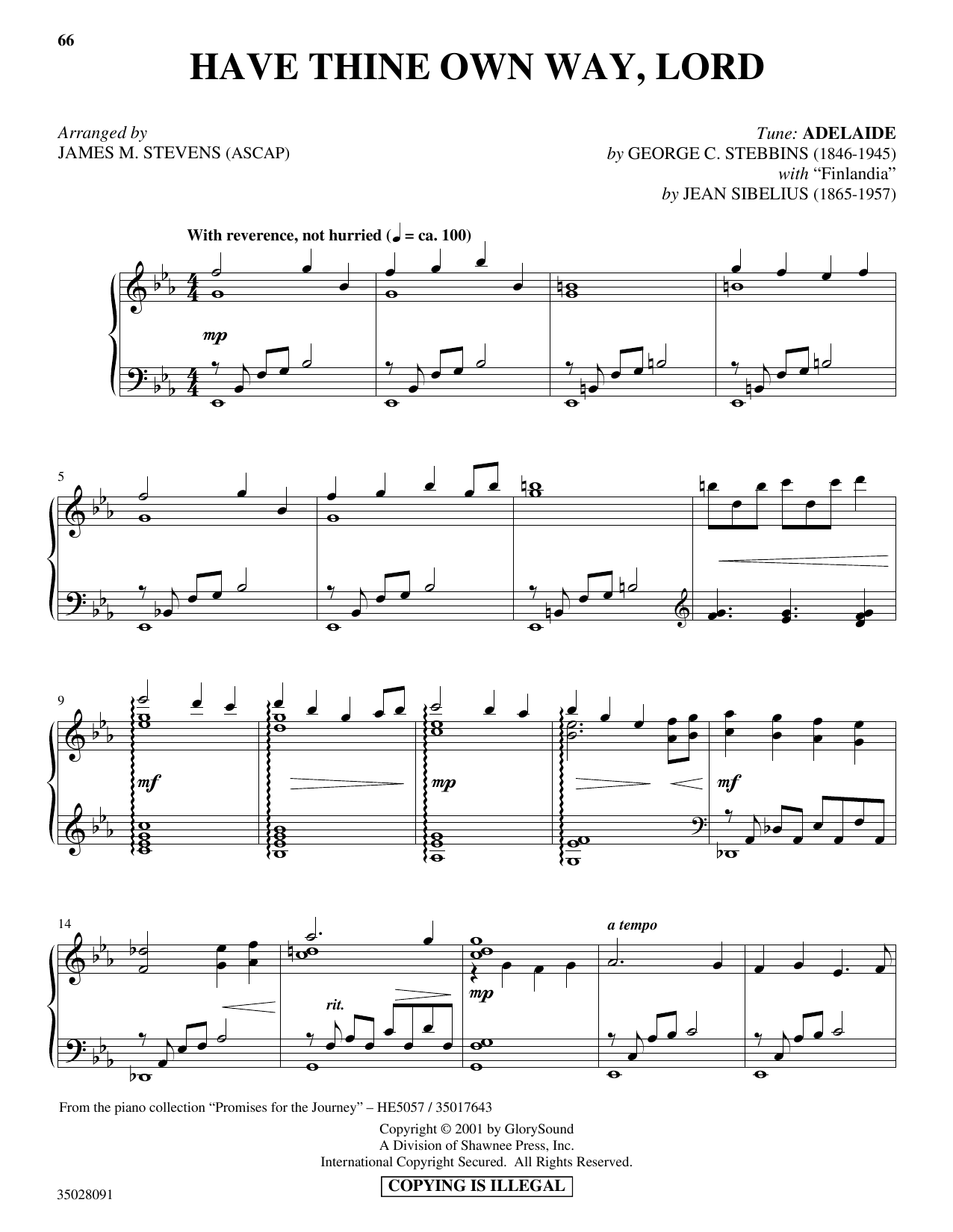 Download or print James M. Stevens Have Thine Own Way, Lord (with "Finlandia") sheet music, chords and digital score arranged for Piano Solo. This Concert score includes 3 page(s).