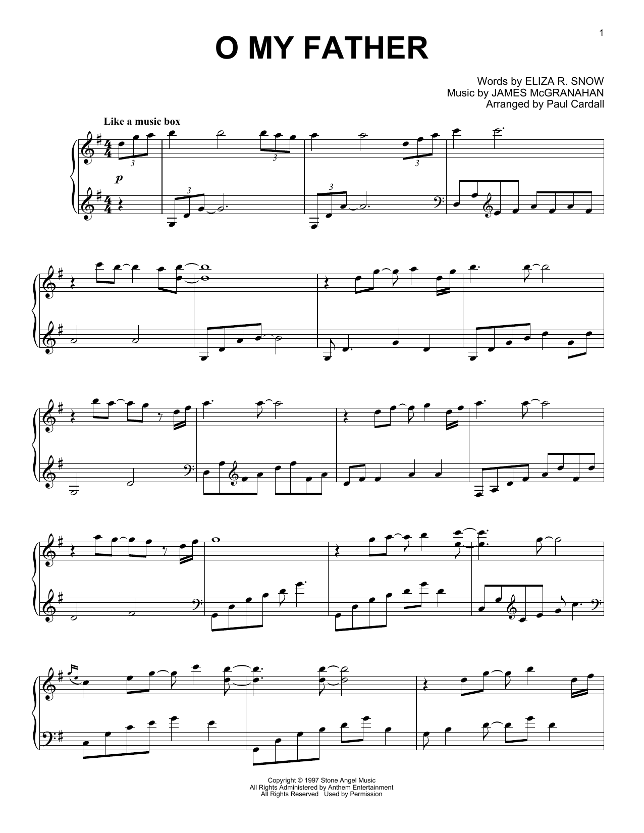 Download or print James McGranahan O My Father (arr. Paul Cardall) sheet music, chords and digital score arranged for Piano Solo. This Gospel score includes 3 page(s).