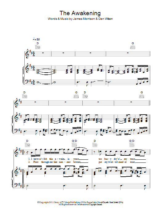 Download or print James Morrison The Awakening sheet music, chords and digital score arranged for Piano, Vocal & Guitar Chords. This Soul score includes 6 page(s).