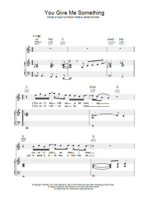 Download or print James Morrison You Give Me Something sheet music, chords and digital score arranged for Piano Chords/Lyrics. This Pop score includes 2 page(s).