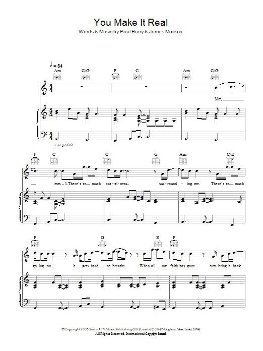 Download or print James Morrison You Make It Real sheet music, chords and digital score arranged for Piano, Vocal & Guitar Chords (Right-Hand Melody). This Pop score includes 6 page(s).