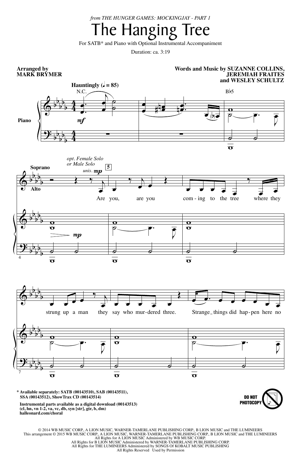Download or print Mark Brymer The Hanging Tree sheet music, chords and digital score arranged for SATB Choir. This Film/TV score includes 9 page(s).