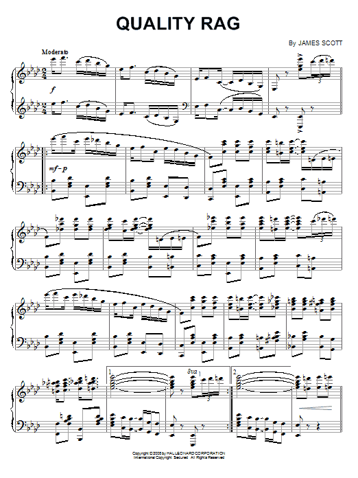 Download or print James Scott Quality Rag sheet music, chords and digital score arranged for Piano Solo. This Jazz score includes 4 page(s).