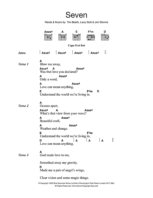 Download or print James Seven sheet music, chords and digital score arranged for Guitar Chords/Lyrics. This Rock score includes 2 page(s).