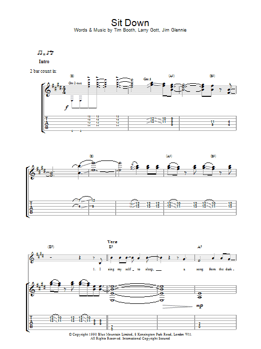 Download or print James Sit Down sheet music, chords and digital score arranged for Lead Sheet / Fake Book. This Rock score includes 3 page(s).