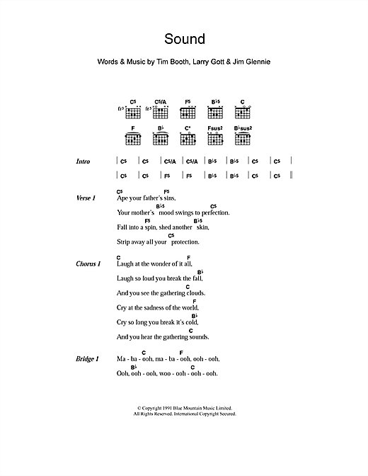 Download or print James Sound sheet music, chords and digital score arranged for Guitar Chords/Lyrics. This Rock score includes 2 page(s).