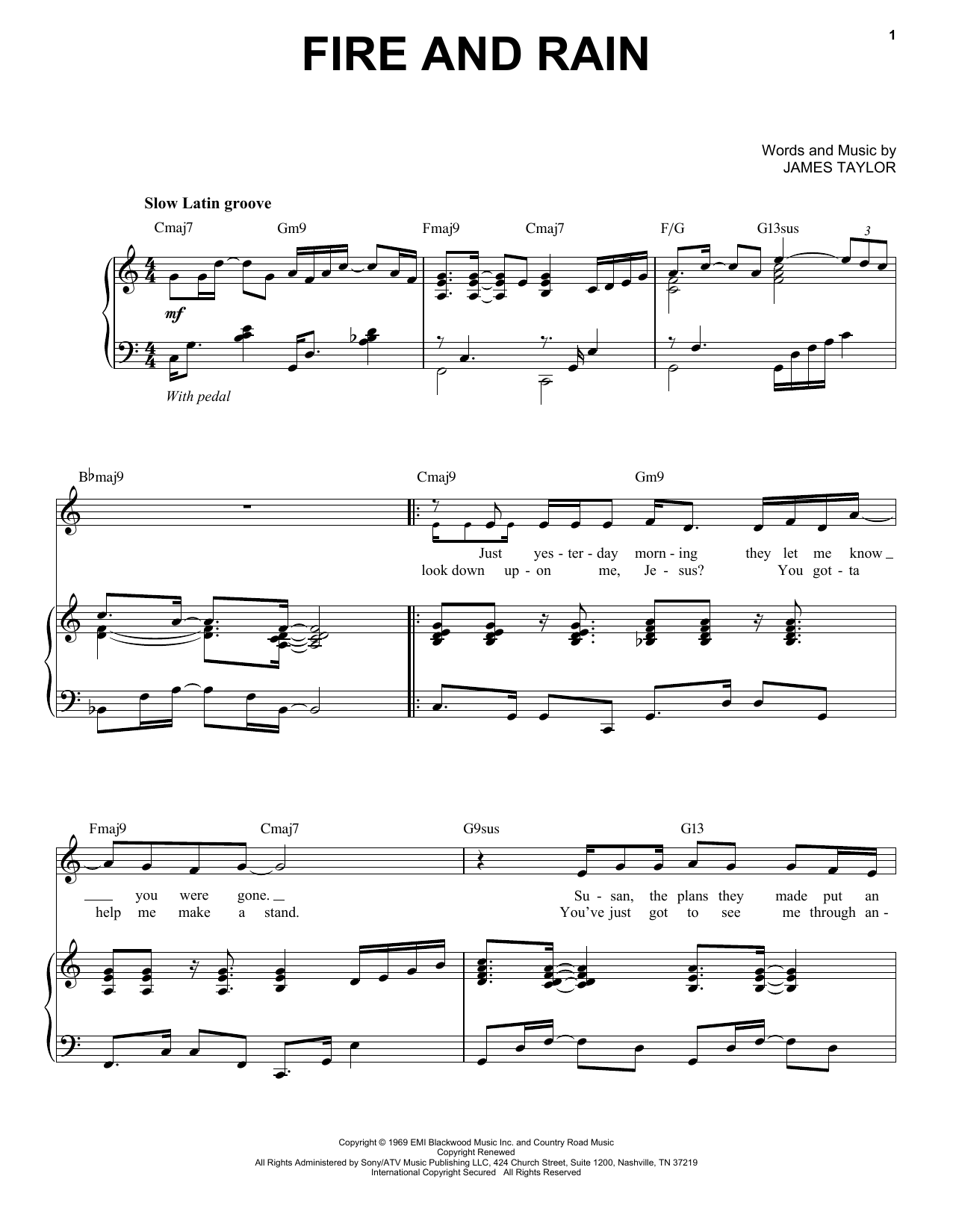 Download or print James Taylor Fire And Rain [Jazz version] (arr. Brent Edstrom) sheet music, chords and digital score arranged for Piano & Vocal. This Pop score includes 4 page(s).