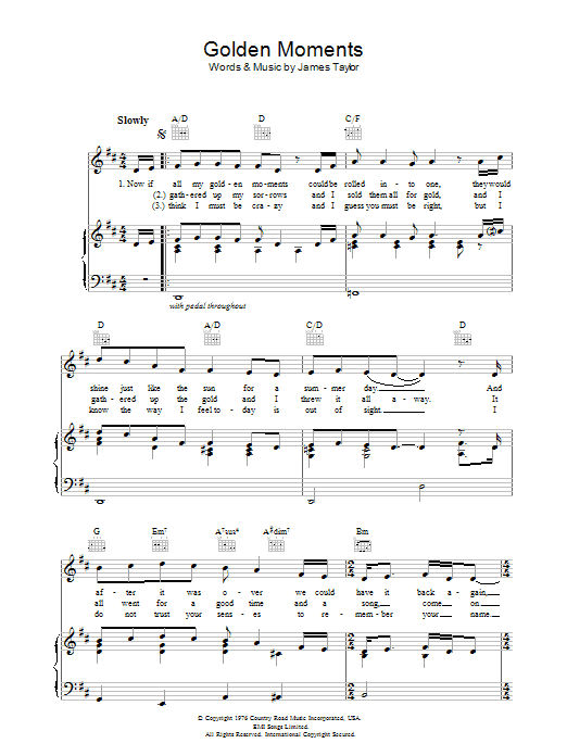 Download or print James Taylor Golden Moments sheet music, chords and digital score arranged for Piano, Vocal & Guitar Chords. This Rock score includes 3 page(s).