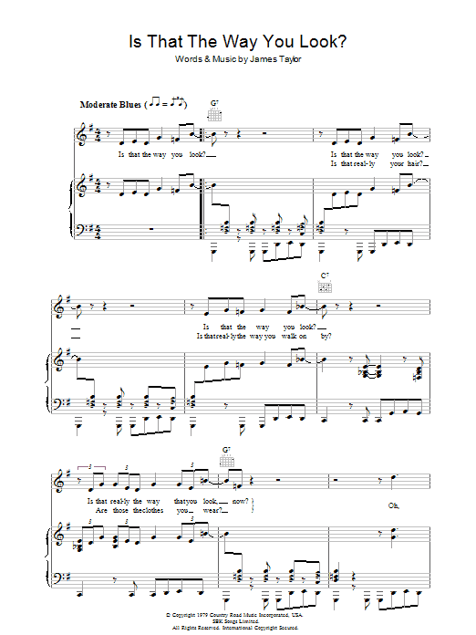 Download or print James Taylor Is That The Way You Look sheet music, chords and digital score arranged for Piano, Vocal & Guitar Chords. This Rock score includes 5 page(s).