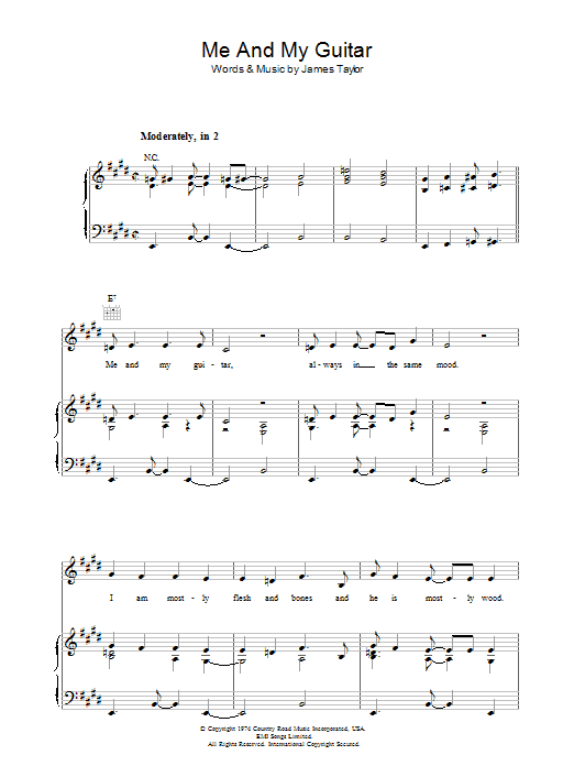 Download or print James Taylor Me And My Guitar sheet music, chords and digital score arranged for Piano, Vocal & Guitar Chords. This Rock score includes 7 page(s).